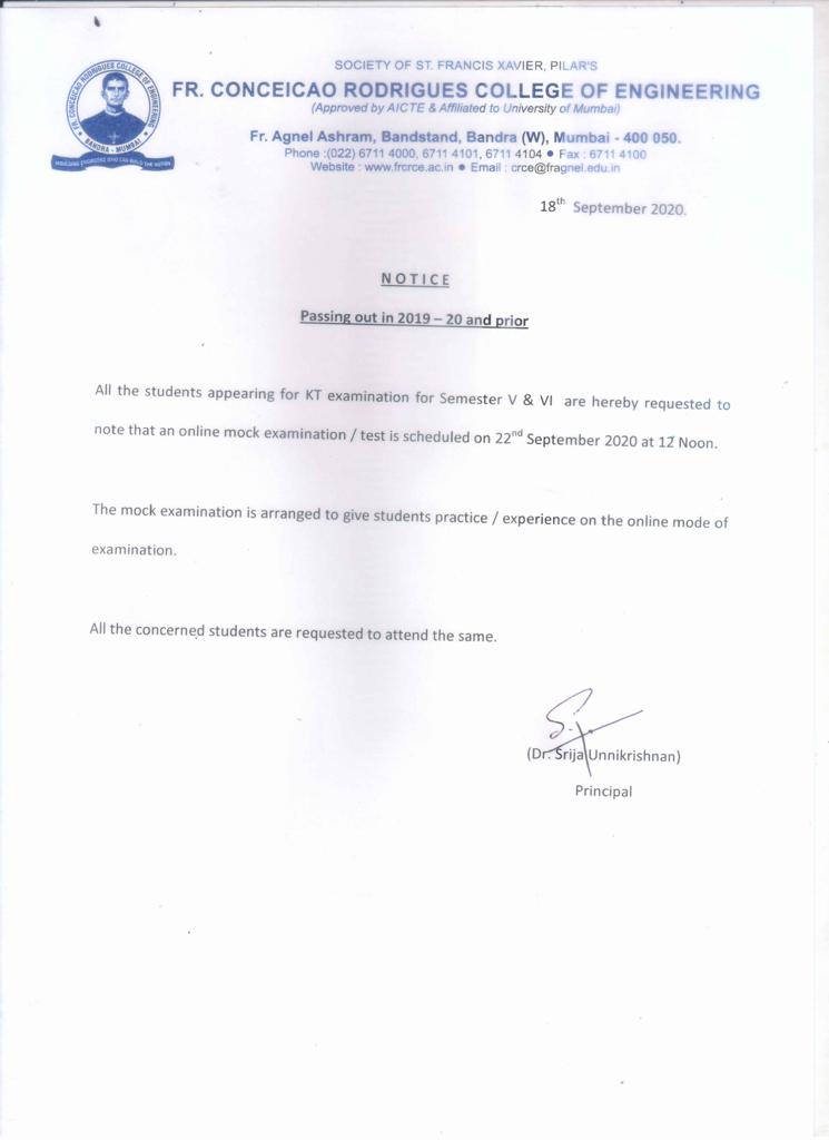 Fr. CRCE Exam Cell Notices