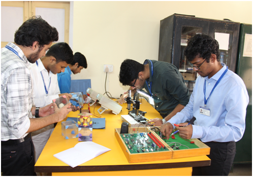 Some of the Instruments available in the lab are: Ultrasonic Interferometer, Solar Cell, Hall Effect Apparatus, Ultrasonic Distance Meter, Crystal Blocks (SCC, BCC, FCC etc.), P-N Junction Band gap measurement setup, He-Ne Lasers (632.8nm, 543.5nm & 612nm), Semiconductor diode lasers ( 650nm), Travelling microscopes, Plank’s Constant Apparatus, Optical spectrometers, Optical sources(Na, Hg, Ne), Diffraction gratings (1D & 2D), Newton’s Rings Apparatus, Air Wedge interference apparatus, Fibre Optic trainer kit, Thermocouple experimental set up, Cathode Ray Oscilloscopes, Signal Generators, Digital Multi Meters, Regulated Power Supplies, etc.